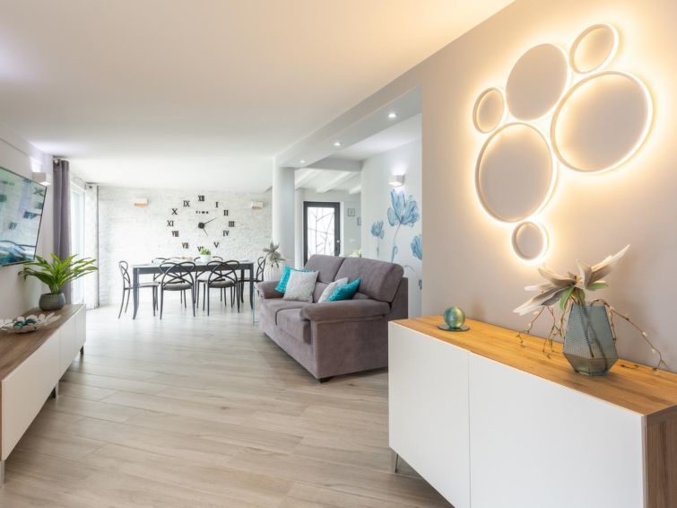 Villa 5-kamers 120 m2. Comfortabel en smaakvol ingericht: woon-/eetkamer met Sat-TV (Flatscreen TV), air-conditioning en heteluchtverwarming. Uitgang naar de veranda, naar het zwembad. 3 2-pers. kamers, elke kamer heeft douche/bidet/WC, air-conditioning en heteluchtverwarming. 1 kamer met 2 bedden, air-conditioning en heteluchtverwarming. Kookhoek (4-pits kookplaat, oven, afwasmachine, broodrooster, waterkoker, magnetron, diepvriezer, elektrische koffiemachine). Douche/bidet/WC. Terrasmeubelen, barbecue, ligstoelen (8). Ter beschikking: wasmachine, kluis, strijkijzer, kinderstoel, kinderbed tot 2 jaar, haardroger. Internet (Internet (WiFi), gratis). Parkeerplaats, parkeerplaats. Maximaal 1 huisdier/hond toegestaan.
