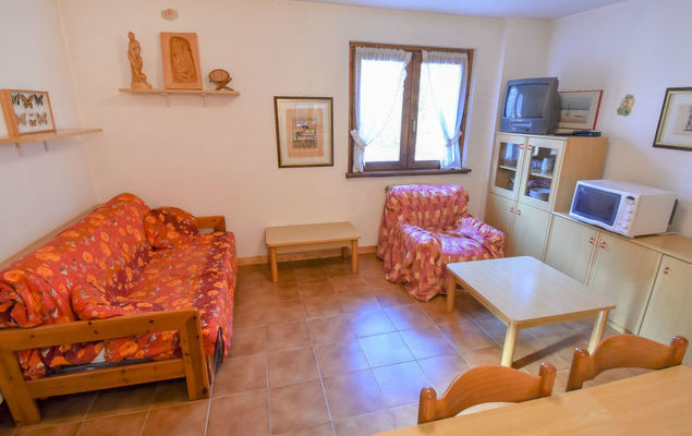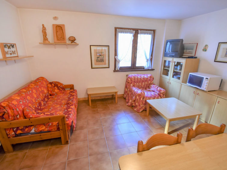 Appartement 3-kamers 60 m2. Gedeeltelijk afgeschuinde daken, eenvoudig en comfortabel ingericht: woon-/slaapkamer met 1 2-pers divanbed en Digitale TV. 1 kamer met 1 2-pers bed. 1 kamer met 3 slaapplaatsen. Kookhoek (4-pits kookplaat, diepvriezer) met eettafel en eethoek. Douche/bidet/WC. Gas-verwarming, boiler. Uitzicht op de bergen, het dal en de plaats. Ter beschikking: Internet (Internet (WiFi), gratis). Maximaal 1 huisdier/hond toegestaan.