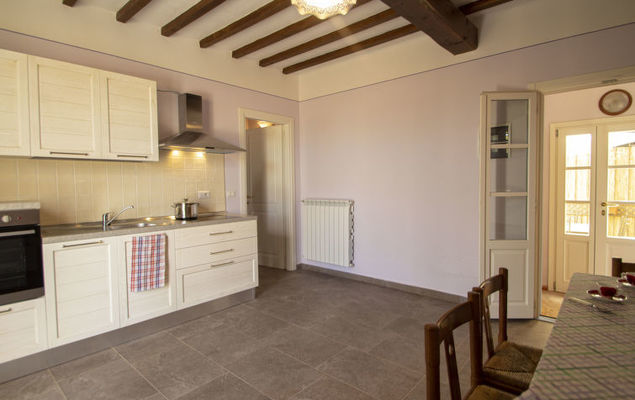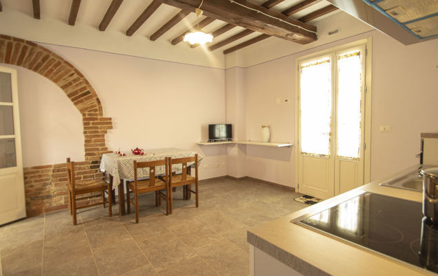"La Casa in Toscana - 06 pax", halfvrijstaand huis 5-kamers 115 m2 op 2 verdiepingen, op de begane grond. Gerenoveerd in 2021, doelmatig en comfortabel ingericht: woon-/eetkamer met Sat-TV. 1 2-pers. kamer. Kookhoek (4-pits kookplaat, oven, magnetron, diepvriezer). Douche/bidet/WC. Bovenverdieping: (buitentrap) woon-/eetkamer met Sat-TV. Uitgang naar het terras. 1 2-pers. kamer. 1 kamer met 2 bedden. Kookhoek (4-pits kookplaat, mini-oven, diepvriezer). 2 douche/bidet/WC's. Ter beschikking: Internet (Internet (WiFi), gratis). Geen interne verbinding tussen de aparte wooneenheden.