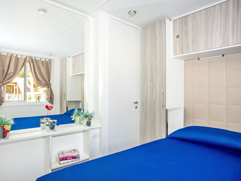 "Bungalow Trendy", 3-kamers mobilhome 30 m2. Het objekt is geschikt voor 4 volwassenen + 1 kinderen. Doelmatig en modern ingericht: woon-/eetkamer met kookhoek en TV. Uitgang naar de veranda. 1 2-pers. kamer met aparte WC. 1 kleine kamer met 3 bedden. Douche/WC. Air-conditioning. Terras 14 m2, tuin. Terrasmeubelen. Ter beschikking: kluis, haardroger. Internet (Internet (WiFi), gratis). Oplaadstation. Privé ingang. IT053006B1ZWQW8ZUA