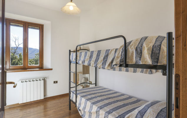 "Caminetto (CNG177)", appartement 3-kamers 64 m2 op 2 verdiepingen. Gerenoveerd in 2019, eenvoudig ingericht: woon-/slaapkamer met 1 divanbed, open haard en eettafel. Open keuken (4-pits kookplaat, oven, diepvriezer) met eethoek. Bad/WC. Bovenverdieping: 1 kamer met 1 2-pers bed. 1 kamer met 1 x 2 stapelbedden. Verwarming. Houten vloeren. Mooi panoramazicht op de bergen en het dal. Ter beschikking: Internet (Internet (WiFi), gratis). Let op: niet rokers woning. Maximaal 1 huisdier/hond toegestaan.