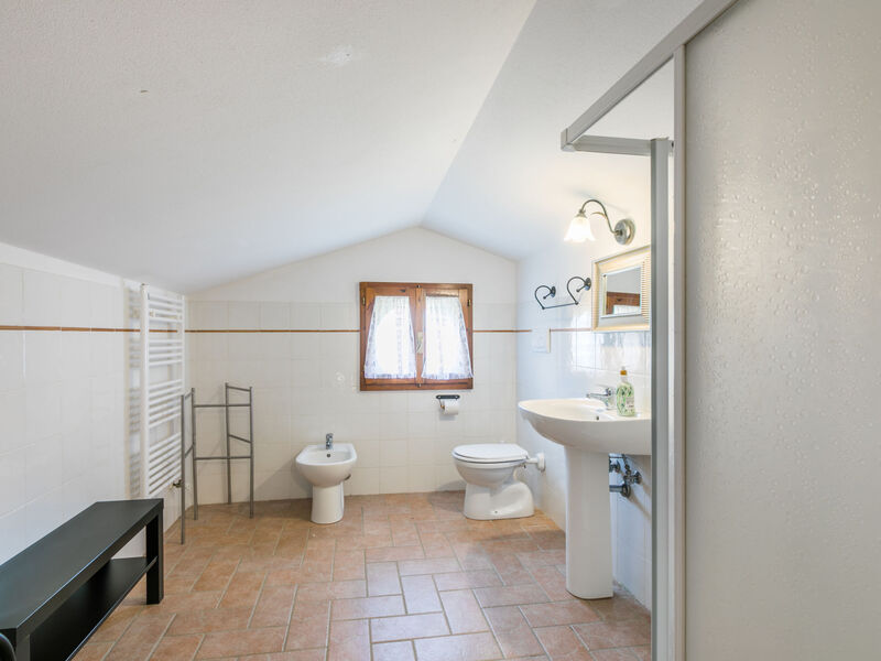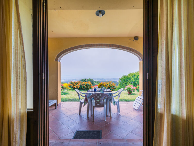 Cottage "Bellavista", van 3 verdiepingen, eenzijdig aangebouwd, omgeven door weiden en velden. 4 appartementen in de woning. Aan de rand van de plaats, 1.2 km van het centrum van Castellina Marittima, geïsoleerde, rustige, verhoogde ligging, 10 m van de bosrand, 17 km van zee, 17 km van het strand. Voor medegebruik: terrein, openluchtzwembad (verhoogd) rond (5 m diameter, 125 - 125 cm diepte, seizoensgebonden beschikbaarheid: 01.Jun. - 30.Sep.). Onderhoud zwembad door de eigenaar/tuinman. In het huis: wasmachine, droger (voor medegebruik). Toegangsweg (100 m onverharde weg). Parkeerplaats op het terrein. Winkel 1.2 km, levensmiddelenwinkel 1.2 km, restaurant 700 m, bushalte 100 m, zandstrand "Vada" 17 km, thermaalbad "Casciana Terme" 30 km. Attracties in de buurt: Pisa 50 km, Lucca 70 km, Firenze 120 km.
