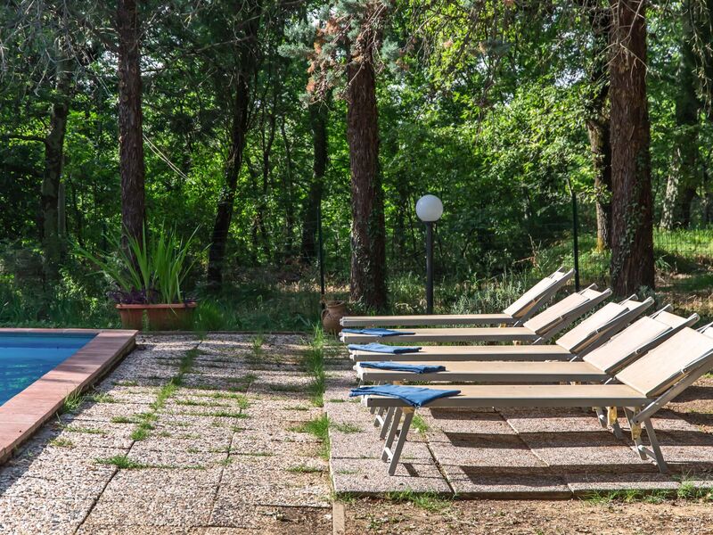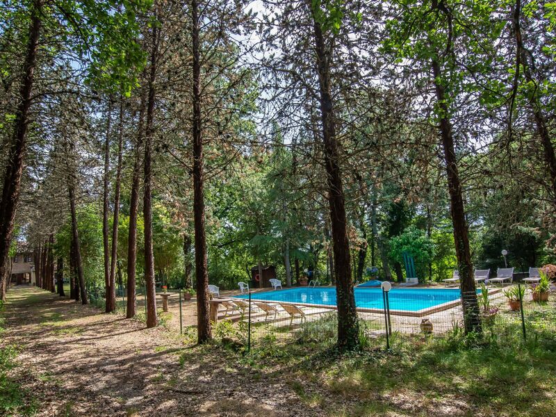Cetona: Agriturismo "Il Pornelleto", vrijstaand uit de 18e eeuw, omgeven door bomen en weiden. 5 appartementen in de woning. Geïsoleerde, verhoogde ligging, te midden van groen. Voor medegebruik: wild terrein 5.000 m2. Voor alleengebruik: wild terrein, openluchtzwembad omheind (6 x 10 m, seizoensgebonden beschikbaarheid: 10.Mei. - 01.Okt.). Buitendouche, tuinmeubelen, barbecue, onderhoud zwembad door de eigenaar/tuinman. In het complex: receptie, restaurant, hot tub (extra). Tafelvoetbal. Wissel van linnengoed (extra wissel te betalen). Wissel van handdoeken (extra wissel te betalen). Kok op verzoek (extra). Ontbijt en half pension op verzoek op aanvraag (extra). 300 m lange rommelige toegangsweg tot aan het huis. Parkeerplaats bij het huis op het terrein. Attracties in de buurt: Chiusi, Chianciano Terme, Perugia, Siena, Orvieto. Bekende meren kunnen gemakkelijk worden bereikt: Trasimeno. Auto noodzakelijk. Baby uitrusting (incl.). Groepen jongeren uitsluitend op aanvraag. Lokale verkoop van streekproducten. De eigenaar woont op hetzelfde terrein. Eigenaar woont in apart huisgedeelte. Autobaan in de buurt.