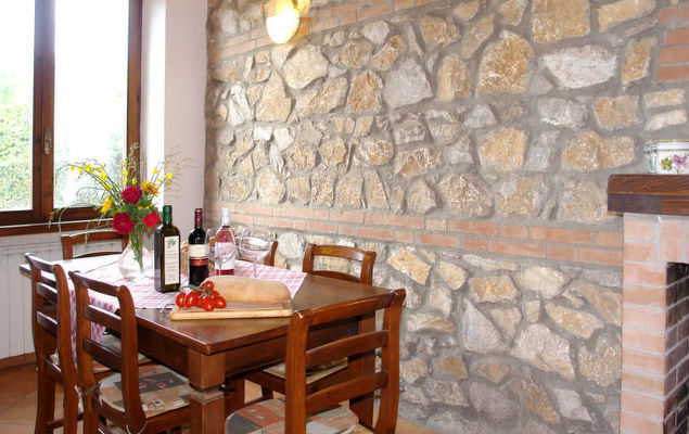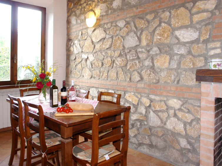 "Stellina", huis 4-kamers 100 m2, op verhoogde begane grond. Rustiek ingericht: woon-/eetkamer met 1 2-pers divanbedden, open haard, eettafel en Sat-TV. 1 kamer met 1 2-pers bed. 1 kamer met 1 2-pers bed. 1 kamer met 2 bedden. Keuken (afwasmachine, Gasfornuis, 4 kookpitten (vlammen), magnetron). 2 douche/WC's. Gas-verwarming. Natuurstenen vloeren. Terras overdekt, op het zuidwesten gelegen. Terrasmeubelen. Panoramazicht. Ter beschikking: wasmachine, kluis, kinderbed. Internet (Internet (WiFi), gratis). Parkeerplaats bij het huis. Let op: niet rokers woning. Maximaal 1 huisdier/hond toegestaan. Als er minder dan het maximale aantal gasten in de accommodatie verblijft, zijn niet alle slaapkamers beschikbaar voor gebruik.