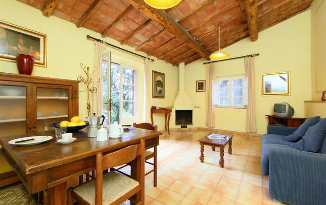 "L'Erika", appartement 2-kamers 57 m2, op de begane grond. Comfortabel en smaakvol ingericht: woonkamer met open haard en TV. 1 2-pers. kamer. Keuken (4-pits kookplaat, oven). Douche/bidet/WC. Ter beschikking: haardroger. Internet (Internet (WiFi), extra). 1 huisdier/hond toegestaan.