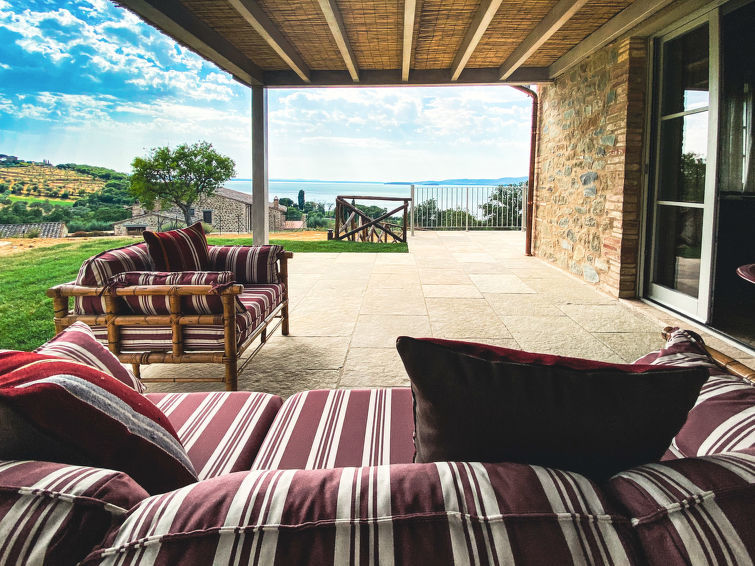 Mooi, luxueuze villa " Polvese", vrijstaand, omgeven door velden. 7 km van het centrum van San Feliciano, 3 km van het centrum van Magione, op een heuvel, 1 km van het meer, aan een doodlopende weg, te midden van groen. Voor alleengebruik: tuin 700 m2 (omheind), openluchtzwembad verwarmd (4 x 11 m, 140 cm diepte, seizoensgebonden beschikbaarheid: 01.Apr.-30.Okt.). Douche/WC bij het zwembad, parkeerplaats bij het huis. Levensmiddelenwinkel 3 km, supermarkt 3 km, restaurant 1 km, bar 1 km, veerboot "Isole Del Trasimeno" 3 km, grasstrand "Torricella" 1 km. Attracties in de buurt: Passignano Sul Trasimeno 7 km, Perugia 20 km, Castiglion Del Lago 25 km, Cortona 30 km, Montepulciano 45 km, Pienza 65 km. Let op: auto noodzakelijk.