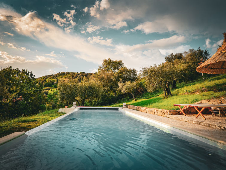 Mooi, luxueus landhuis "Il conforto Dell'artista", 600 m boven zeeniveau, vrijstaand, omgeven door velden. 14 km van het centrum van Panicale, geïsoleerde ligging op een heuvel. Voor alleengebruik: terrein 15 ha, tuin 1 ha (niet omheind), openluchtzwembad (4 x 15 m, 100 - 180 cm diepte, seizoensgebonden beschikbaarheid: 01.Mei.-30.Sep.). Barbecue. Toegangsweg (6 km onverharde weg, bergweg). Parkeerplaats op het terrein. Levensmiddelenwinkel 7 km, supermarkt 7 km, restaurant 7 km, meer (zwemmen) "Trasimeno" 13 km. Attracties in de buurt: Perugia 24 km, città Della Pieve 25 km, Castiglione Del Lago 27 km, Passignano Sul Trasimeno 28 km, Cetona 37 km. Let op: auto wordt niet aangeraden. Niet geschikt voor kleine kinderen. De eigenaar accepteert geen jeugdgroepen.
