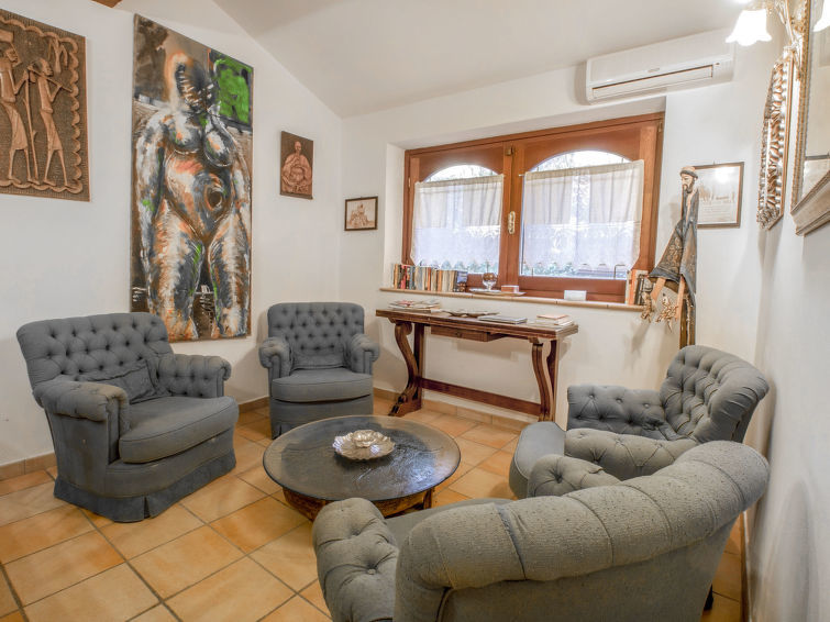Villa 5-kamers 210 m2 op 2 verdiepingen. Comfortabel en gezellig ingericht: groot woon-/eetkamer met TV en Flatscreen TV. Uitgang naar de tuin, naar de loggia. 1 2-pers. kamer met douche/bidet/WC. Groot woonkamer met kookhoek. Uitgang naar de tuin. Open keuken (6-pits kookplaat, oven, afwasmachine, magnetron, diepvriezer, elektrische koffiemachine). Aparte WC. Bovenverdieping: 1 2-pers. kamer met Kleedkamer met douche/bidet/WC. Uitgang naar de tuin, naar het terras, naar het zwembad. 1 kamer met 1 bed, 1 2-pers bed en douche/bidet/WC. Uitgang naar de tuin, naar het terras, naar het zwembad. Verwarming (extra). Terrasmeubelen, barbecue. Ter beschikking: wasmachine, klamboe. Internet (Internet (WiFi)). 1 klein huisdier/hond toegestaan.
