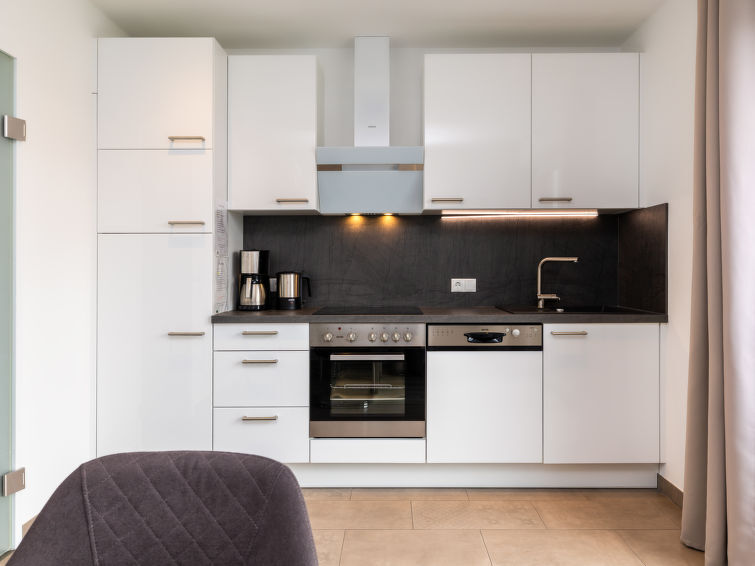 "Bergblick", appartement 3-kamers 58 m2 op de 1e verdieping. Comfortabel en smaakvol ingericht: hal. Berging. 2 2-pers. kamers, elke kamer heeft TV (Flatscreen TV). Open keuken (oven, afwasmachine, 4 keramische glas kookplaten, broodrooster, waterkoker, elektrische koffiemachine) met eettafel. Douche, aparte WC. Vloerverwarming. Zeer mooi uitzicht op de bergen. Ter beschikking: haardroger. Internet (Internet (WiFi), gratis). Niet rokers woning. Rookmelders. 50401-000137-2020
