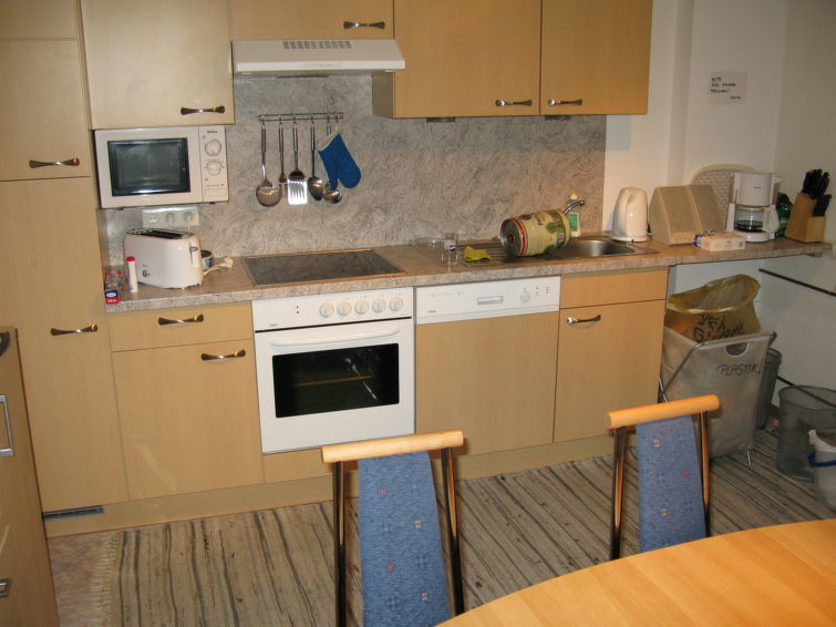 "Babsi (MHO485)", appartement 4-kamers 85 m2 op 2 verdiepingen. Gezellig ingericht: souterrain: woon-/eetkamer met eettafel, bar, Sat-TV en CD-speler. Keuken (4-pits kookplaat, oven, afwasmachine, broodrooster, waterkoker, elektrische koffiemachine) met eettafel. Aparte WC. Bovenverdieping: 2 2-pers. kamers, elke kamer heeft wastafel en Sat-TV. Uitgang naar het balkon. 1 2-pers. kamer met wastafel. Uitgang naar het balkon. Douche/WC. Verwarming. Houten vloeren, vloerbedekking. Balkon. Ter beschikking: kinderstoel. Internet (Internet (WiFi), gratis). Let op: brandblusser. Geen interne verbinding tussen de etages.