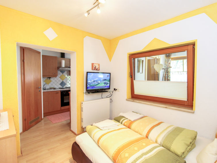 Appartement 2-kamers 42 m2, op de begane grond. Het objekt is geschikt voor 2 volwassenen + 2 kinderen. Smaakvol en gezellig ingericht: hal. 1 2-pers. kamer. Woon-/slaapkamer met 1 2-pers divanbed en Kabel-TV (Flatscreen TV). Open keuken (4-pits kookplaat, oven, afwasmachine, broodrooster, waterkoker, magnetron) met eettafel, radio. Douche/WC. Zithoek in de tuin. Terrasmeubelen, bergruimte. Mooi uitzicht op de bergen en het landschap. Ter beschikking: haardroger. Internet (Internet (WiFi)). Let op: geschikt voor families. Privé ingang.