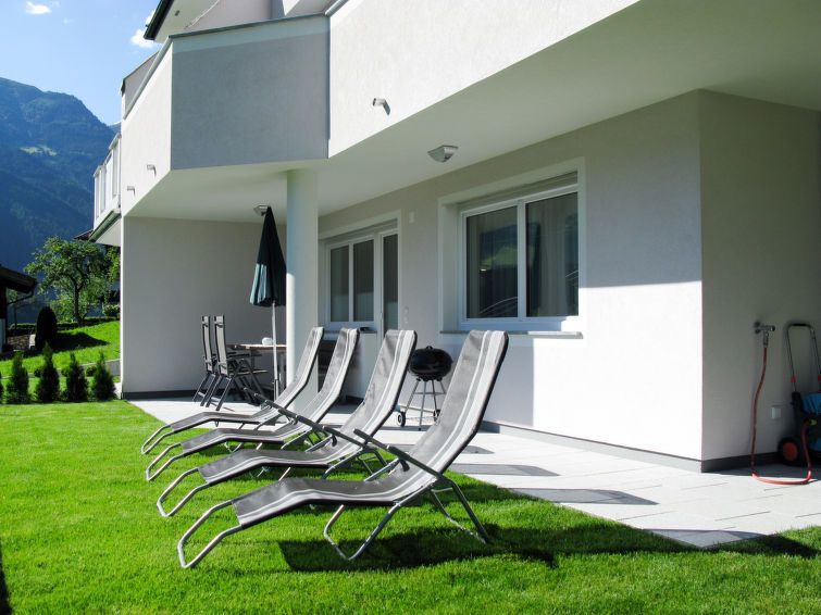 Ramsau 4 km van Mayrhofen: Twee onder één kap woning "Hanser", bouwjaar 2012. 3.5 km van het centrum van Mayrhofen, 500 m van het centrum van Ramsau, zonnige ligging tegen een helling. In het huis: berging voor ski's. Broodjesservice. Parkeerplaats op het terrein. Supermarkt 900 m, station "Hippach" 800 m, openluchtzwembad 1.5 km, overdekt zwembad 5 km. Bergtrein 4 km, kabelbaan op 2 km, skibushalte 50 m.