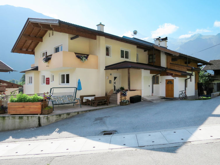 Burgstall 2 km van Mayrhofen: Huis met 2 woningen "Holaus". 2 appartementen in de woning. In de wijk Burgstall, 2 km van het centrum van Mayrhofen, 2 km van het centrum van Ramsau, 8 km van het centrum van Zell am Ziller. In het huis: berging voor ski's, skischoendroger. Broodjesservice. Trappenweg (5 treden) naar het huis. Parkeerplaats (voor 3 auto's) op het terrein. Winkel 2 km, supermarkt 2.5 km, station "Ramsau" 2 km. Bergtrein 1.2 km, skibushalte 30 m, skischool 2 km, langlaufloipe 150 m. Let op: de eigenaar woont in hetzelfde huis.