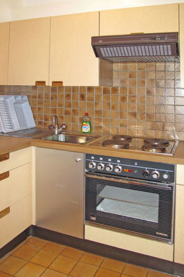 "Rahm (MHO171)", appartement 1-kamer 27 m2, op de bovenverdieping. Doelmatig ingericht: woon-/slaapkamer met 1 2-pers bed, eettafel en Sat-TV. Keuken (3-pits kookplaat, oven, waterkoker, magnetron, elektrische koffiemachine). Douche/WC. Gas-verwarming. Balkon. Ter beschikking: kluis, kinderstoel, kinderbed. Internet (Internet (WiFi), gratis). Let op: niet rokers woning. Rookmelders.