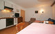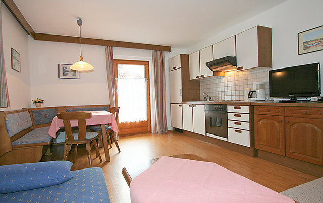 Appartement 3-kamers 55 m2 op de 1e verdieping. Gezellig ingericht: 1 2-pers. kamer. Uitgang naar het balkon. 1 kamer met 1 divanbed en 1 2-pers bed. Uitgang naar het balkon. Woonkeuken (4-pits kookplaat, oven, afwasmachine, waterkoker, elektrische koffiemachine) met 1 2-pers divanbed, eethoek en Sat-TV (Flatscreen TV). Uitgang naar het balkon. Douche, aparte WC. Balkon 10 m2. Terrasmeubelen. Mooi uitzicht op de bergen. Ter beschikking: Internet (Internet (WiFi), extra). Let op: 1 huisdier/hond toegestaan. Rookmelders. Maximale bezetting: 7 personen. Toeslag ter plaatse te betalen voor de 6e en 7e persoon: 's winters: 18 EURO/pers/dag. 's Zomers: 10 EURO/pers/dag.