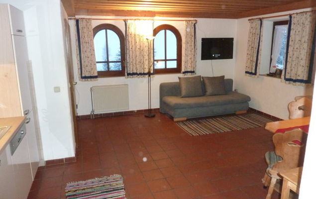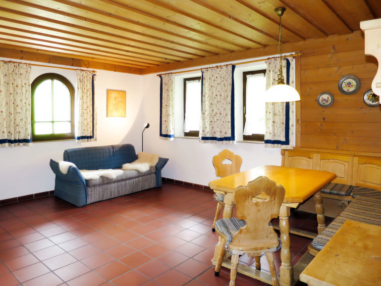 "Berghaus (MHO764)", appartement 7-kamers 130 m2, op de begane grond. Doelmatig en rustiek ingericht: woon-/slaapkamer met 1 divanbed, eethoek, kookhoek en Sat-TV. Woon-/slaapkamer met 1 divanbed, eethoek en Sat-TV. Woon-/slaapkamer met 1 bed, 1 2-pers bed, eethoek, kookhoek en Sat-TV. 2 2-pers. kamers. 2 kleine 2-pers. kamers, elke kamer heeft 1 2-pers bed. Open keuken (oven, afwasmachine, 4 keramische glas kookplaten, broodrooster, waterkoker, elektrische koffiemachine). 3 douche/WC's. Olie-verwarming, vloerverwarming. Panoramazicht. Ter beschikking: Internet (Internet (WiFi), gratis). Bedindeling is flexibel. Er zijn meer slaapmogelijkheden beschikbaar dan het maximaal toegestane aantal personen dat echter niet mag worden overschreden.