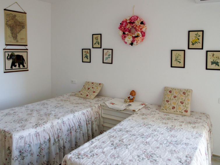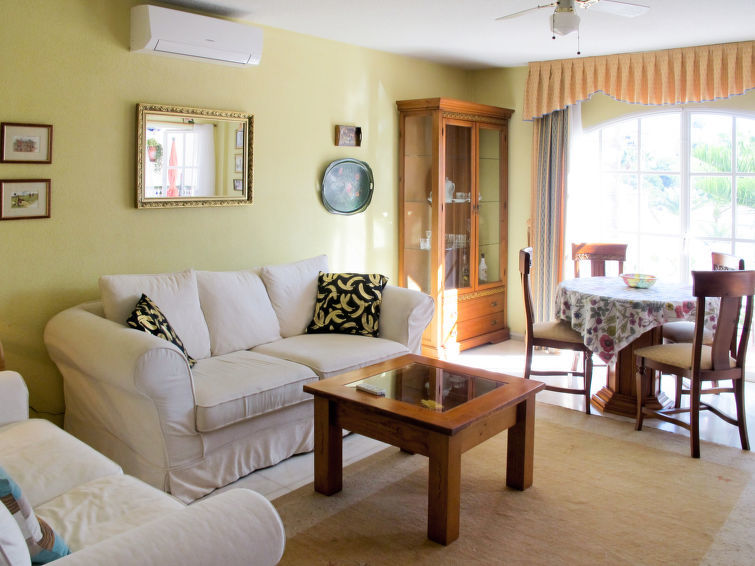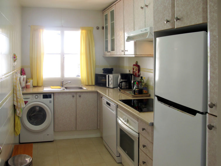 "Balcon del Golf (MIJ200)", appartement 3-kamers 95 m2 op de 1e verdieping. Het objekt is geschikt voor 4 volwassenen. Licht, zeer smaakvol en gezellig ingericht: woon-/slaapkamer met 1 2-pers divanbed (135 cm), eettafel, TV, radio, stereo-installatie, elektrische verwarming en air-conditioning. Uitgang naar het balkon. 1 kamer met 1 2-pers bed (135 cm), elektrische verwarming en air-conditioning. 1 kamer met 2 bedden (90 cm, lengte 200 cm). Uitgang naar het balkon. Keuken (oven, afwasmachine, 3 keramische glas kookplaten, broodrooster, waterkoker, magnetron, diepvriezer, elektrische koffiemachine). Bad/WC. Natuurstenen vloeren. Balkon. Balkonmeubilair, ligstoelen (2). Uitzicht op het zwembad en de tuin. Ter beschikking: wasmachine, kinderbed. Internet (Internet (WiFi), gratis). VFT/MA/38684