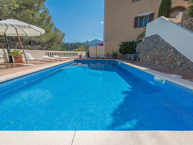 Port de Sóller: Groep van 9 appartementen, gelegen tegen een helling omgeven door pijnbomen mooi, gezellig, comfortabel flatgebouw "S'Atalaia Sea Views". In de plaats, 800 m van het centrum van Port de Sóller, zonnige ligging op een heuvel, 500 m van de bosrand, 1 km van zee, 1.1 km van het strand. Voor medegebruik: openluchtzwembad hoekig (10 x 5 m, seizoensgebonden beschikbaarheid: 01.Mei.-30.Sep.). Terras. In het huis: internetaansluiting, Internet (WiFi), wasmachine. Steile toegangsweg. Parkeerplaats bij het huis op het terrein. Levensmiddelenwinkel 1 km, supermarkt 1 km, restaurant, bar 300 m, centrum te voet bereikbaar in 14 minuten, bushalte 1 km, zandstrand 1 km. Jachthaven 1.3 km. Let op: geschikt voor families, geschikt voor senioren. Het objekt is geschikt voor 4 volwassenen. Het zwembad is te betreden via trappen. Ligstoelen.