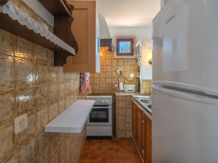 Huis 4-kamers 90 m2. Eenvoudig en antiek ingericht: woon-/eetkamer met open haard en Digitale TV. 2 kamers, elke kamer heeft 2 bedden. 1 kamer met 2 bedden. Open keuken (oven, magnetron) met doorgeefluik. Douche/WC. Terras 5 m2, overdekt, tuin, gazon, prieel 5 m2. Terrasmeubelen, barbecue. Ter beschikking: wasmachine. Zonneterras op het dakterras. Gemeenschappelijke wasmachine te delen met een ander huis (ES7778.111.1). GE0203212018
