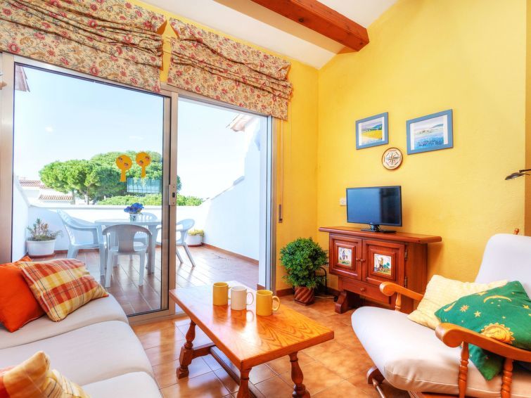 Les Terroges: Flatgebouw "Residencial Gran Sol", van 3 verdiepingen. Aan de rand van de plaats, 1.5 km van het centrum van L'Escala, centrale, zonnige ligging, 500 m van zee, 500 m van het strand. Voor medegebruik: groot, mooie, verzorgde tuin met gazon en planten, openluchtzwembad hoekig (seizoensgebonden beschikbaarheid: 01.Mei.-31.Okt.) met zeewater. Kinderzwembad, tafeltennis. Levensmiddelenwinkel 300 m, supermarkt 500 m, restaurant 100 m, internet cafe 150 m, fietsverhuur 1.1 km, zandstrand "Platja de Riells" 500 m, duikschool 1.8 km, overdekt zwembad 1.5 km. Jachthaven 1.9 km, surfschool 1.8 km, zeilschool 1.8 km, midgetgolf 500 m, manege 3.4 km, kinderspeelplaats 500 m. Attracties in de buurt: Ruinas Greco-Romanas d'Empùries 2.2 km, Skydive Empuriabrava 23 km, Parque acuatico Aqua Brava Roses 27 km, Casino-Festival de Perelada 30 km, Museo Dalí Figueres 26 km, Pitch and Putt Gualta 15 km. Let op: geen lift.