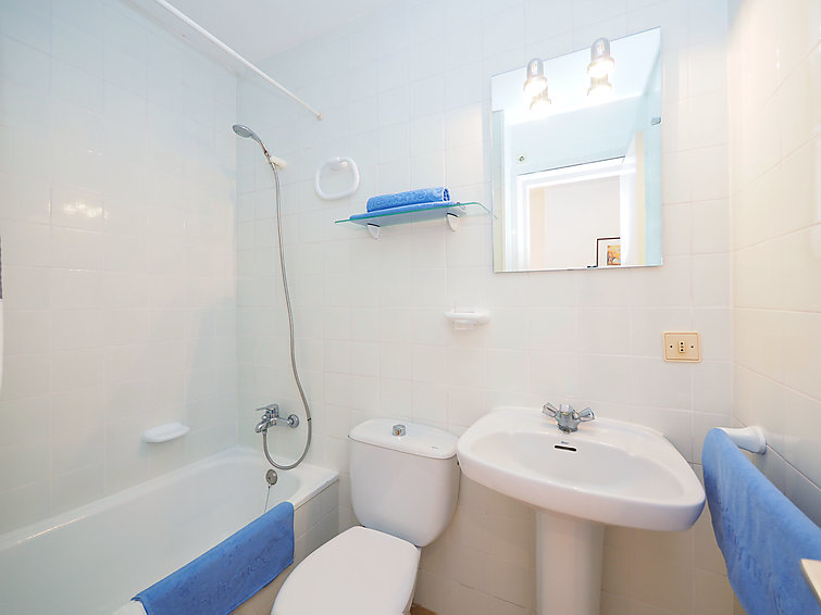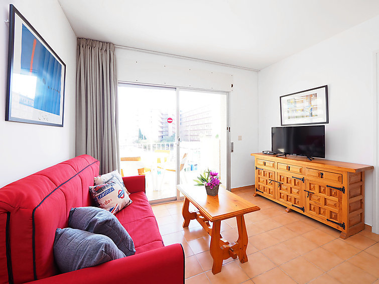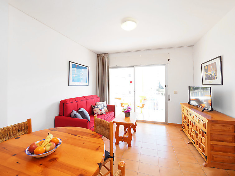 Appartement 2-kamers 50 m2 op de 2e verdieping. Comfortabel ingericht: woon-/eetkamer met 1 2-pers divanbed, Sat-TV en Digitale TV (Flatscreen TV). Uitgang naar het terras. 1 kamer met 2 bedden (90 cm), ventilator. Open keuken (4 keramische glas kookplaten, broodrooster, magnetron, diepvriezer, elektrische koffiemachine). Bad/WC. Terras 6 m2. Terrasmeubelen. Ter beschikking: wasmachine. Internet (Internet (WiFi), gratis). Let op: maximaal 1 klein huisdier/hond toegestaan. TV alleen ES, FR. De slaapkamerventilator is een plafondventilator. Er zit geen blinde vlek op het raam van de eetkamer. HUTG008492