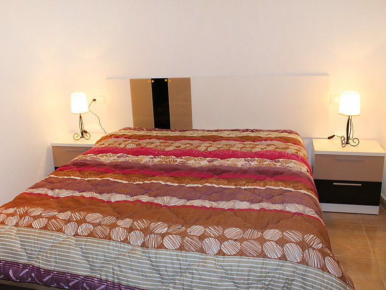 "Coblanca III", appartement 3-kamers 50 m2 op de 7e verdieping. Ruim en licht, eenvoudig en doelmatig ingericht: woon-/eetkamer 28 m2 met 1 divanbed, Digitale TV en air-conditioning. 1 kamer 10 m2 met 2 bedden (90 cm, lengte 190 cm). 1 kamer 9 m2 met 1 2-pers bed (150 cm, lengte 190 cm), douche/bidet/WC. Kookhoek (oven, 4 keramische glas kookplaten, broodrooster, waterkoker, magnetron, diepvriezer, elektrische koffiemachine). Douche/WC. Beperkt uitzicht op zee, het zwembad en de plaats. Ter beschikking: wasmachine, strijkijzer, haardroger. Parkeerplaats. AT321664BM