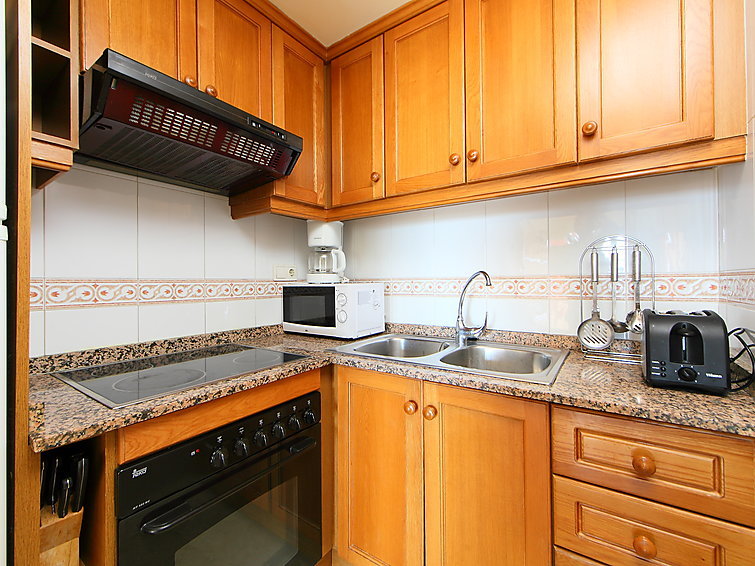 "Los Gemelos", appartement 2-kamers 38 m2 op de 27e verdieping. Het objekt is geschikt voor 3 volwassenen. Ruim en licht, eenvoudig en doelmatig ingericht: woon-/eetkamer 15 m2 met 1 bed (90 cm, lengte 190 cm), Digitale TV. Uitgang naar het terras, naar de veranda. 1 kamer 9 m2 met 2 bedden (90 cm, lengte 190 cm). Keuken (oven, 4 keramische glas kookplaten, broodrooster, waterkoker, magnetron, elektrische koffiemachine). Bad/bidet/WC. Terras 90 m2. Terrasmeubelen. Uitzicht op het zwembad, de tuin en de plaats. Ter beschikking: wasmachine, strijkijzer, haardroger. Parkeerplaats nr. 155. AT321867BM