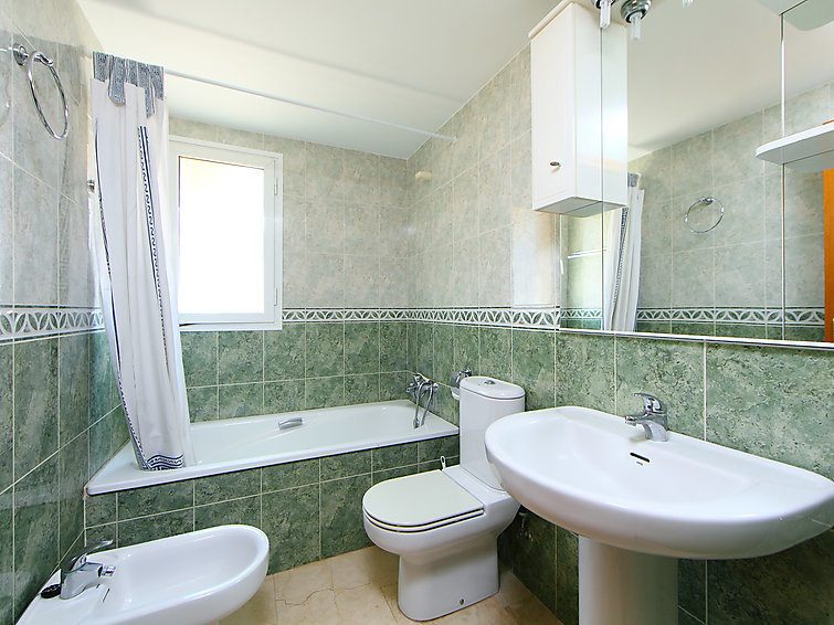 "Gemelos", appartement 3-kamers 58 m2 op de 19e verdieping. Het objekt is geschikt voor 4 volwassenen + 1 kinderen. Licht, eenvoudig en doelmatig ingericht: woon-/eetkamer 15 m2 met 1 divanbed en Digitale TV. 1 kamer 11 m2 met 1 2-pers bed (135 cm, lengte 190 cm). 1 kamer 9 m2 met 2 bedden (90 cm, lengte 190 cm). Keuken (oven, 4 keramische glas kookplaten, broodrooster, waterkoker, magnetron, diepvriezer, elektrische koffiemachine). Bad/bidet/WC, douche/WC. Terras 12 m2. Terrasmeubelen. Uitzicht op het zwembad, de tuin en de plaats. Ter beschikking: wasmachine, strijkijzer, haardroger. Parkeerplaats nr. 304. Let op: TV alleen ES. AT321865BM