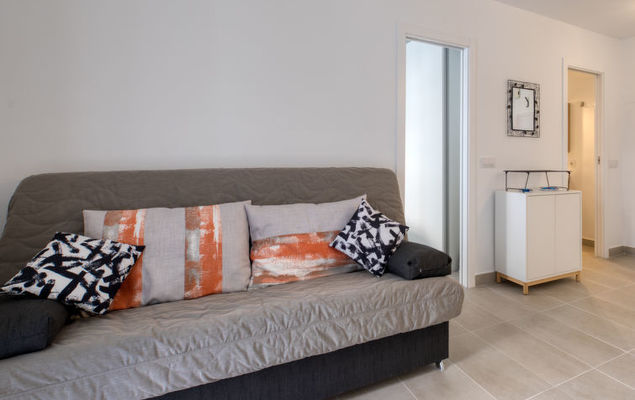 Appartement 2-kamers 37 m2 op de 1e verdieping, op het noorden gelegen. Licht, comfortabel en gezellig ingericht: woon-/eetkamer met 1 divanbed (130 cm, lengte 190 cm), Digitale TV. Uitgang naar het terras. 1 kamer met 1 2-pers bed (2 x 80 cm, lengte 190 cm). Uitgang naar het terras. Open keuken (oven, afwasmachine, 2 keramische glas kookplaten, magnetron). Douche/WC. Terras 14 m2. Balkonmeubilair. Ter beschikking: wasmachine, strijkijzer, kinderbed, haardroger. Internet (Internet (WiFi), gratis). Parkeerplaats nr. 106 (overdekt, 1 Auto), parkeerplaats nr. 106 (overdekt, 1 Auto). Let op: niet rokers woning. VT480019A