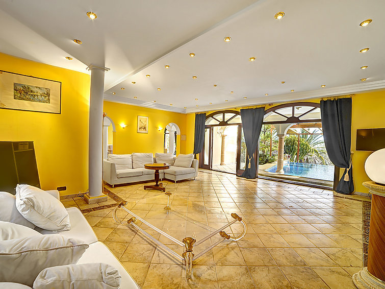 Zeer groot villa "St Anthony", van 3 verdiepingen. In de wijk Castellans, rustige, zonnige, verhoogde ligging, 2.5 km van zee. Voor alleengebruik: mooie, verzorgde tuin 4.080 m2 (omheind) met gazon en planten, openluchtzwembad (5 x 15 m, 100 - 230 cm diepte, 01.01.-31.12.) met trap. Douche/WC bij het zwembad, buitendouche, tafeltennis, terras. In het huis: sauna, solarium, biljart, air-conditioning, alarmsysteem. Supermarkt 1 km, restaurant 600 m, zandstrand "Arenal" 3 km. Groepen jongeren uitsluitend op aanvraag.